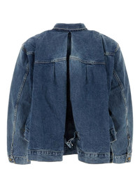 distressed denim jacket Highlights - Blue - Button-up front - Front pockets - Long sleeves Imported Composition Cotton 100% Washing instructions Read Manufacturer Guidelines