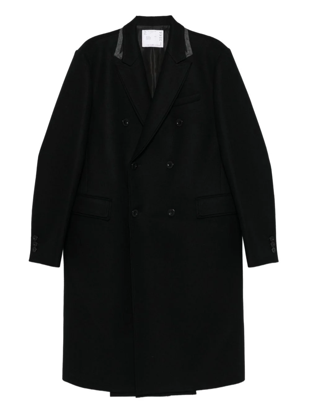 double-breasted coat Highlights - Black - Double-breasted closure - Peak lapels - Long sleeves - Buttoned cuffs - Straight hemline Imported Composition Lining: Cupro 100%, Rayon 100% Outer: Wool 100% Washing instructions Dry Clean Only