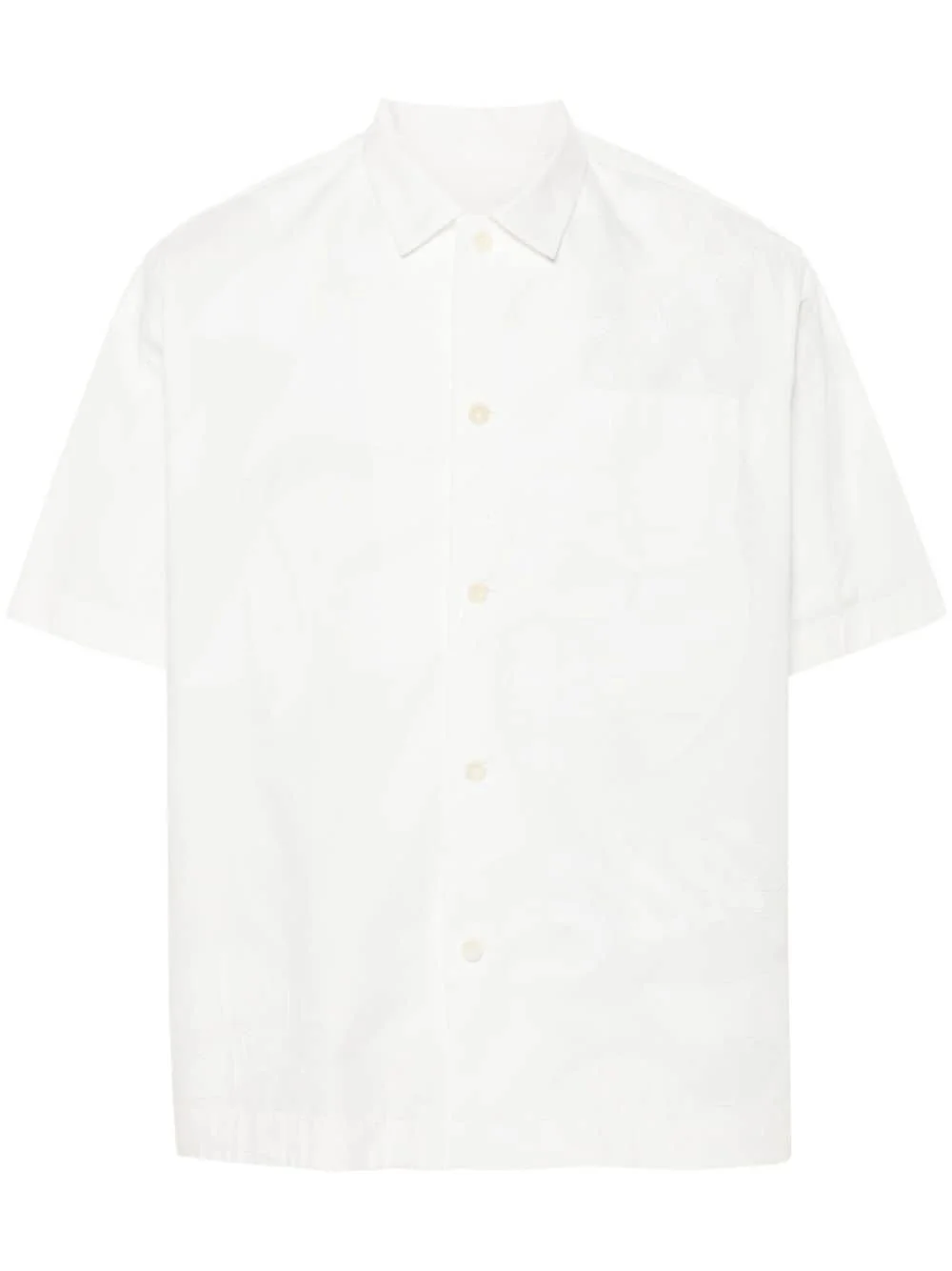 embroidered-design button-up shirt Highlights - White - Embroidered design - Classic collar - Front button fastening - Drop shoulder - Short sleeves - Chest patch pocket - Side slits - Straight high-low hem Imported Composition Polyester 65%, Cotton 35% SIZE & FIT Model measurements Height 6 ft 2 in(1.89 m) Bust/Chest 36.22 in(92 cm) Hips 35.82 in(91 cm) Waist 28.54 in(72.5 cm) FittingInformation Designed for a regular fit, allowing for a comfortably loose fit throughout the body Made from a midweight non-stretch fabric This piece fits true to size – take your usual size