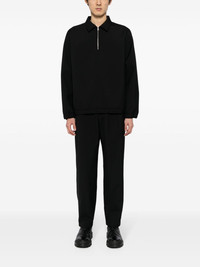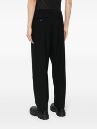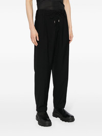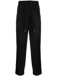 drawstring-fastening tapered trousers Highlights - Black - Cotton blend - Pleat detailing - Belt loops - Mid-rise - Tapered leg - Concealed front fastening - Internal drawstring fastening waist - Two side slit pockets - Two rear jetted pockets Imported Composition Acetate 68%, Cotton 60%, Nylon 40%, Polyester 32% Lining: Cupro 100% Outer: Polyester 70%, Wool 30% SIZE & FIT Model measurements Height 6 ft 2 in(1.87 m) Bust/Chest 34.25 in(87 cm) Hips 36.22 in(92 cm) Waist 29.52 in(75 cm) Measurement INSIDE LEG 28.74 in(73 cm) Outside Leg 40.94 in(104 cm) FRONT RISE 13.38 in(34 cm) WAIST 31.49 in(80 cm) FittingInformation Designed for a relaxed tapered leg, allowing a comfortable loose fit above the knee with a closer fit towards the calves The internal drawstring at the hem allows for fitted preferences at the ankle Made from a midweight non-stretch fabric This piece fits true to size – take your usual size Washing instructions Dry Clean Only