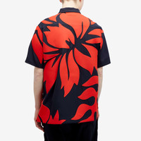 Sacai used to fly under the radar, but now it's leading the pack in hybrid design, thanks to Chitose Abe's innovative pattern cutting and unconventional silhouettes. This vacation shirt is like a cool optical illusion. What seems like a print is actually embroidered patches gliding across the cotton poplin, complete with 'Sacai' upfront. - 65% Polyester, 35% Cotton - Button Closure - Side Slits - Dipped Back Hem