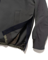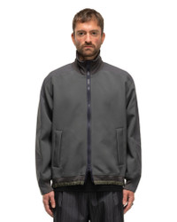 sacai presents their seasonal rendition of the classic raglan sleeve track jacket silhouette, revamped with a slew of clean, technical details. The sophisticated zip up jacket is constructed from a robust polyester fabric that has a characteristic heft and comfortable hand feel. Features a mock neck finish, dual zipper front closure, zipper hand pockets, side panels going down each sleeve, and a contrast nylon hem finish. Unexpected finishes include the partial ribbed cuffs, and dimensional back vent. Made in Japan. DETAILS - 23-03211M - Body: 100% polyester, Trim: 100% nylon - Double front zip - Hand pockets - Mock neck - Partially ribbed cuffs - Back vent - Nylon trim - Made in Japan