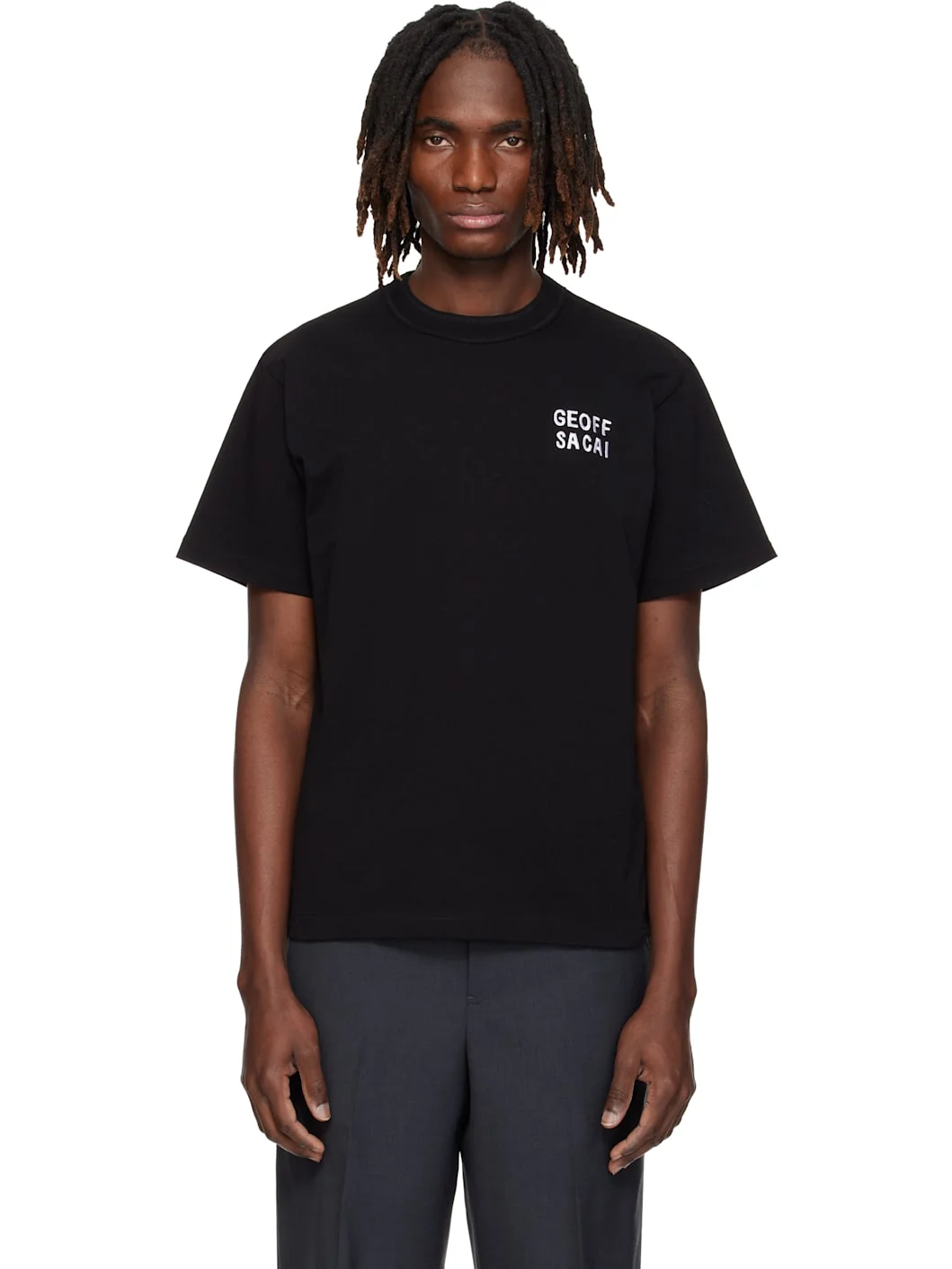 Cotton jersey T-shirt. · Rib-knit crewneck · Logo embroidered at chest · Graphic and text printed at back Part of the geoff sacai by Geoff McFetridge capsule. Supplier color: Black 100% cotton. Made in Japan 261445M213014
