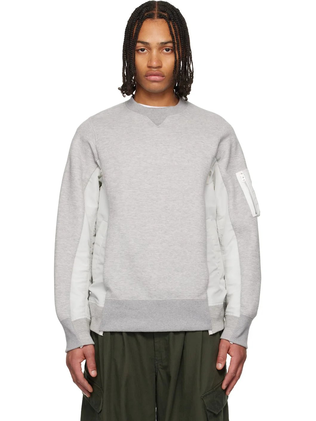 Gray Sponge Sweat & Nylon Twill Sweatshirt