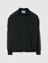Loose-fit jersey blouson jacket. Stand collar. Two pockets at sides. Elasticized cuffs and hem. Snap closures at side seams. Zip closure at center front. - 100% Polyester SKU: 23-03161M