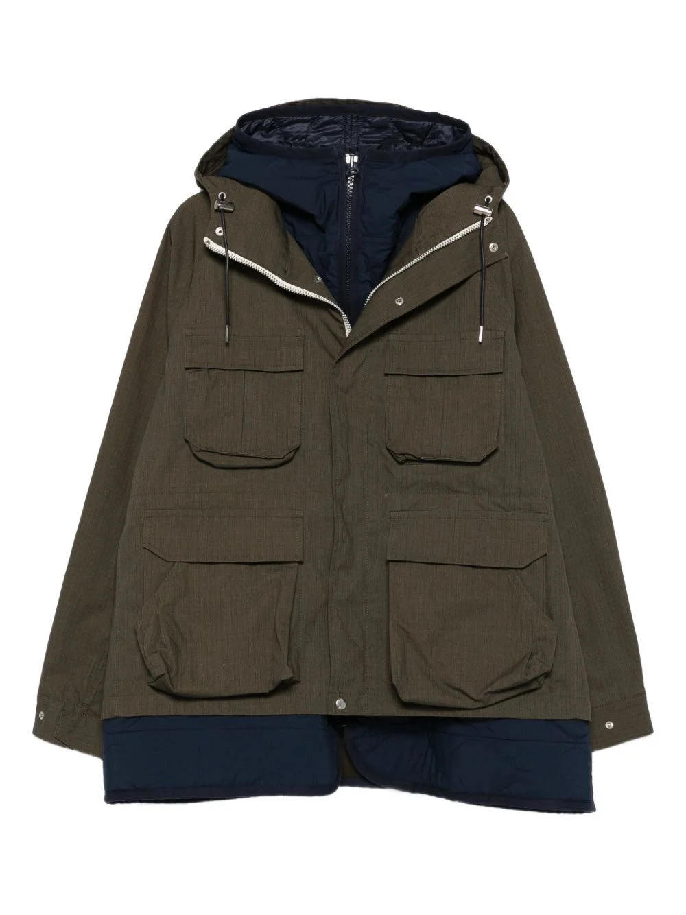 hooded multi-pocket coat Highlights - Dark green - Multiple pockets - Drawstring hood - Zip fastening - Two-tone design Imported Composition Outer: Polyester 100%, Wool 100%, Cotton 53%, Nylon 47% Lining: Cupro 100% Washing instructions Dry Clean Only