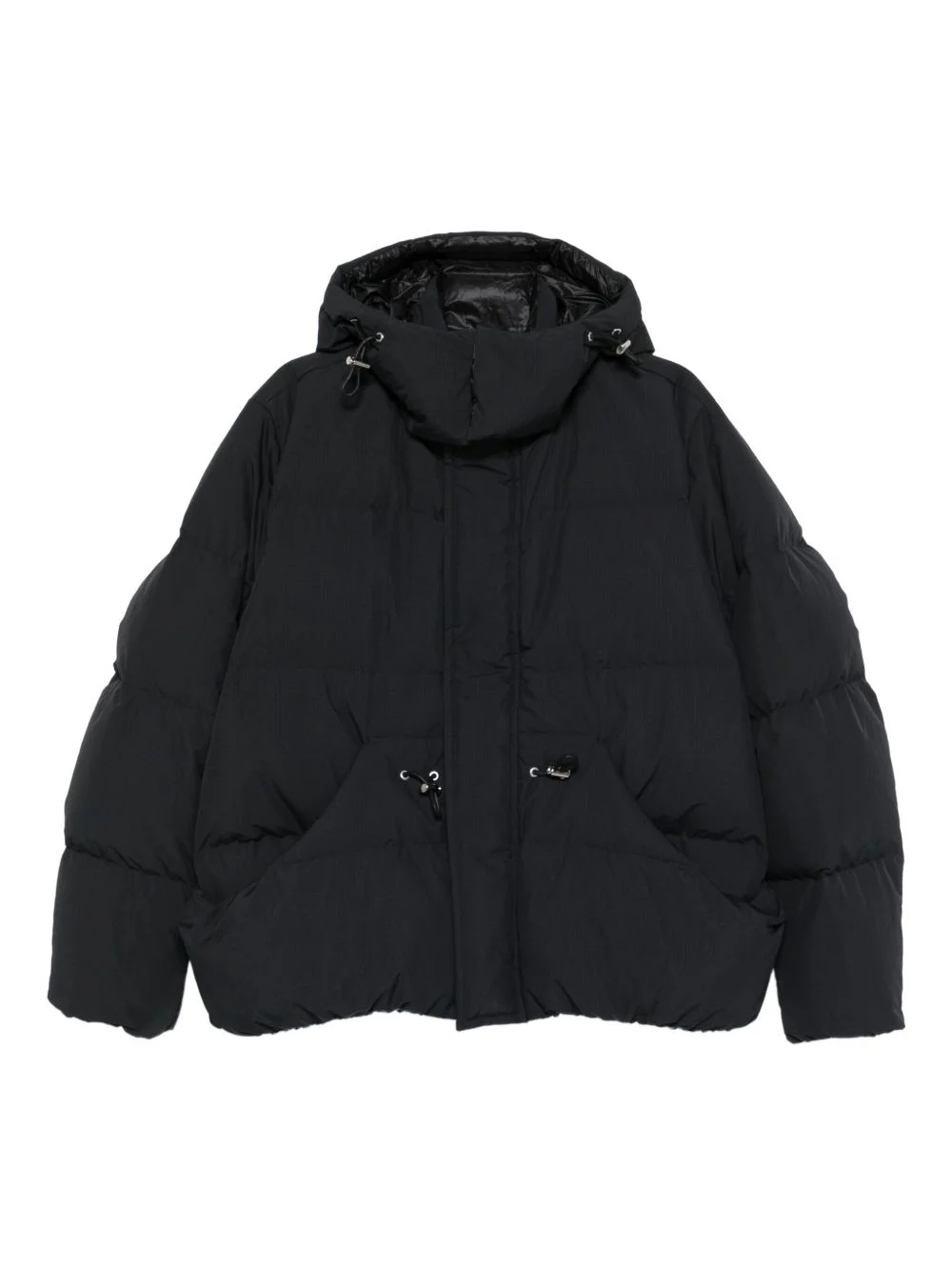hooded puffer coat Highlights - Black - Drawstring hood - Concealed front fastening - Long sleeves Imported Composition Fabric 100% Washing instructions Read Manufacturer Guidelines