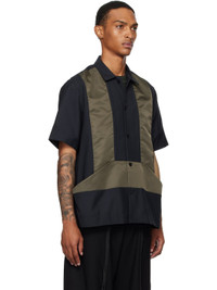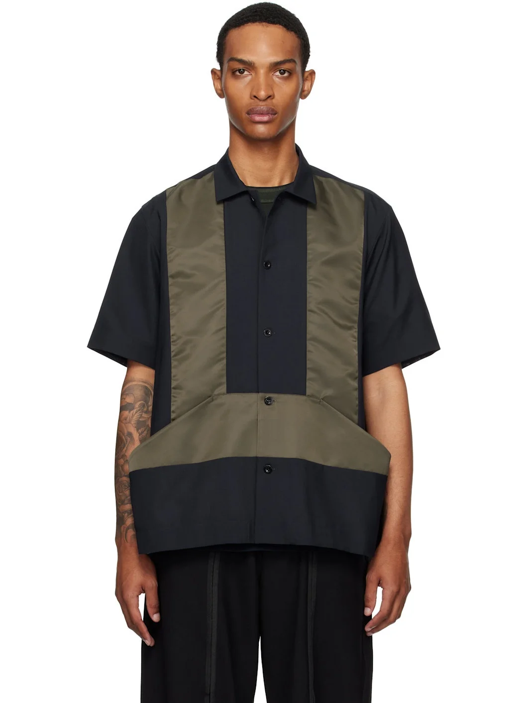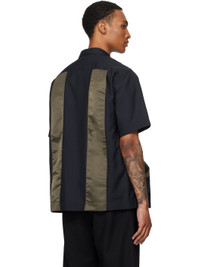 Plain-woven wool-blend and nylon twill shirt. · Paneled construction · Spread collar · Button closure · Patch pockets at waist · Box pleat at back Supplier color: Navy/Khaki Body 1: 70% polyester, 30% wool. Body 2: 100% nylon. Lining: 100% cupro. Made in Japan 252445M192011