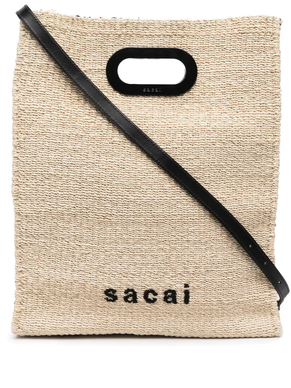 logo-embroidered woven tote bag Highlights - Beige - Calfskin leather/abaca - Hemp - Embroidered logo to the front - Two-tone detail - Cut-out top handle - Interwoven design - Main compartment Imported Composition Outer: CALFSKIN 100%, Abaca 100% SIZE & FIT Measurement DEPTH 3.93 in(10 cm) HANDLE 1.18 in(3 cm) HEIGHT 14.96 in(38 cm) STRAP 22.04 in(56 cm) WIDTH 12.2 in(31 cm)