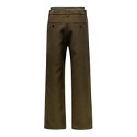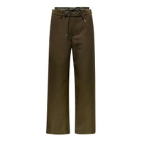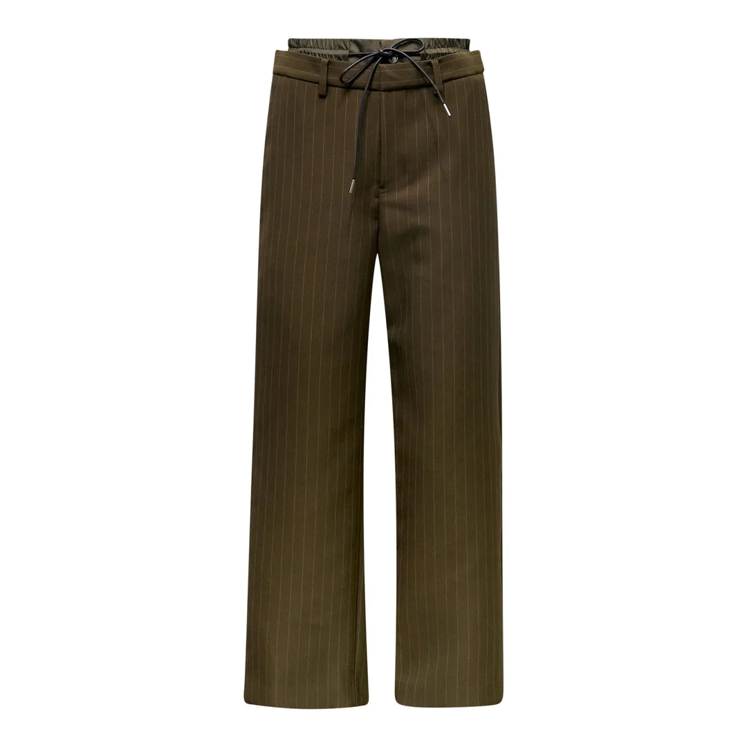 600078560BRN002 / 26-03963M/00/818 - Elasticated waistband with drawstring closure - Vertical pinstripe pattern - Wide-leg relaxed fit - Premium matelasse twill construction - Front pleats - Side pockets sacai Matelasse Twill Pants deliver avant-garde tailoring with hybrid construction and contemporary functionality. Crafted from premium matelasse-textured twill fabric in deep olive green with vertical pinstripe detailing throughout. The elasticated waistband with drawstring closure combines formal suiting aesthetics with modern comfort and sacai's signature deconstructed approach.