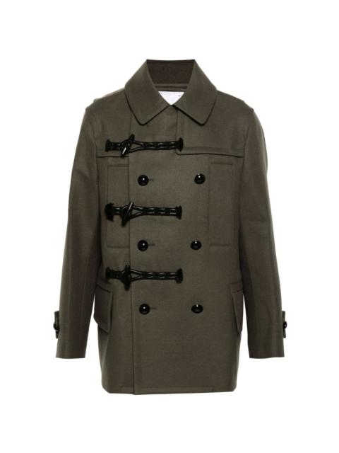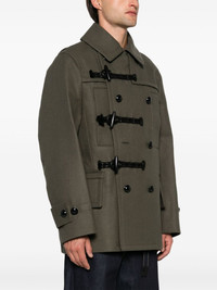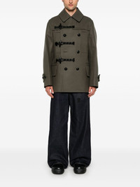 wool duffle coat Highlights - Olive green - Wool - Felted - Double-breasted button fastening - Front toggle fastening - Spread collar - Rope detailing - Two chest welt pockets - Two side flap pockets - Full lining - Straight hem Imported Composition Lining: Cupro 100% Outer: Wool 100% SIZE & FIT Model measurements Height 6 ft 2 in(1.87 m) Bust/Chest 37.79 in(96 cm) Hips 37.79 in(96 cm) Waist 30.31 in(77 cm) FittingInformation Designed to be unstructured, offering a loose fit throughout Made from a midweight non-stretch fabric