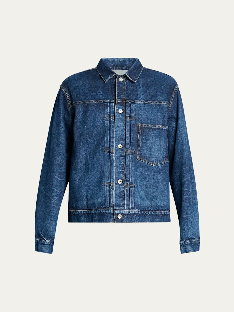 A classic wardrobe staple, this SACAI denim chore jacket features an adjustable half-belt on the back for a customizable fit. Spread collar Long sleeves Button cuffs Chest patch pocket Relaxed fit Button front closure Cotton Dry clean Made in Japan Online Inquiries: BGS21_NDR5W| Store Inquiries: #5070433