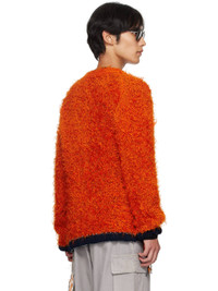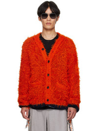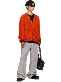 Shag-knit cardigan. · Rib-knit Y-neck, hem, and cuffs · Button closure · Welt pockets at front · Loose thread detailing at side seams and cuffs · Contrast stitching in white Supplier color: Orange Body: 76% polyester, 24% nylon. Trim: 85% cotton, 14% polyester, 1% polyurethane. Made in Japan 252445M200001
