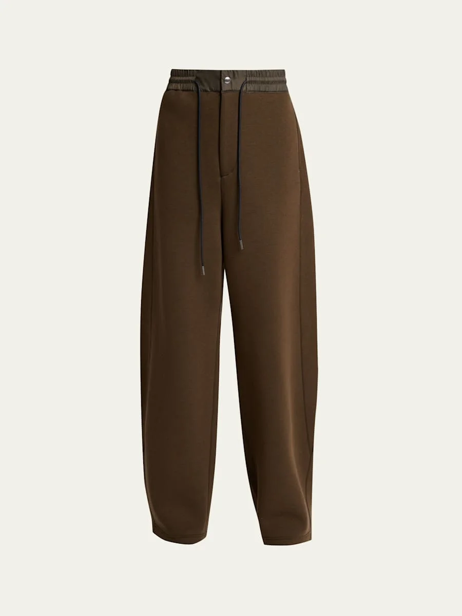 These barrelleg sweatpants by SACAI are composed of a sponge fabric with a contrasting technical waistband Drawstring waistband Side seam pockets Single back patch pocket Wide legs Snap/zip fly Cotton/polyester Dry clean Made in Japan
