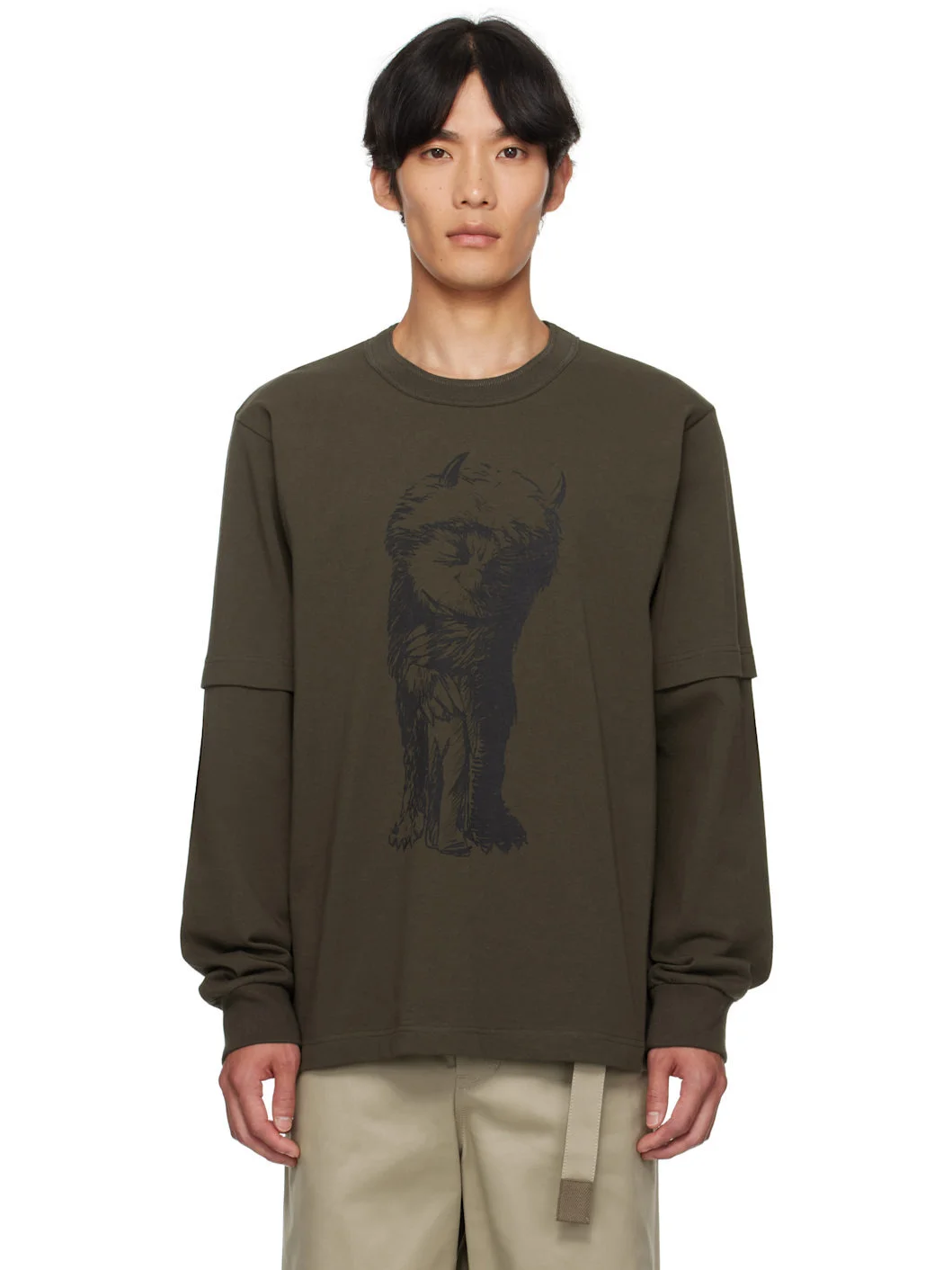 Cotton jersey T-shirt. · Rib-knit crewneck and cuffs · Graphic printed at front · Layered sleeves · Logo and text printed at back Part of the Where The Wild Things Are capsule. Supplier color: Khaki Body: 100% cotton. Trim: 100% rayon. Made in Japan 252445M213029