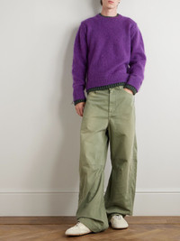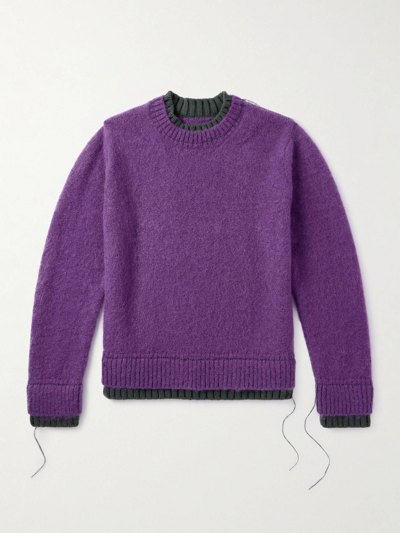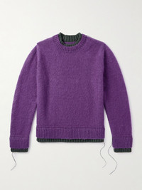 Sacai's AW25 collection is a masterclass in layering. Seen on the runway, this sweater is made from tactile mohair-blend in a relaxed fit and finished with contrasting trims along the ribbed edges. Loose, trailing threads give it an artful feel. Size & Fit - Size 1 = S, 2 = M, 3 = L and 4 =XL - Model wears a size larger to achieve a looser fit - Mid-weight knit - Model is shown wearing a 2 - Model measures: chest 36"/ 92cm, height 6'1"/ 185cm Details & Care - Purple and army-green mohair-blend - 67% mohair, 17% nylon, 16% wool - Dry clean