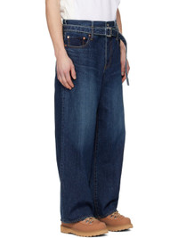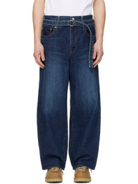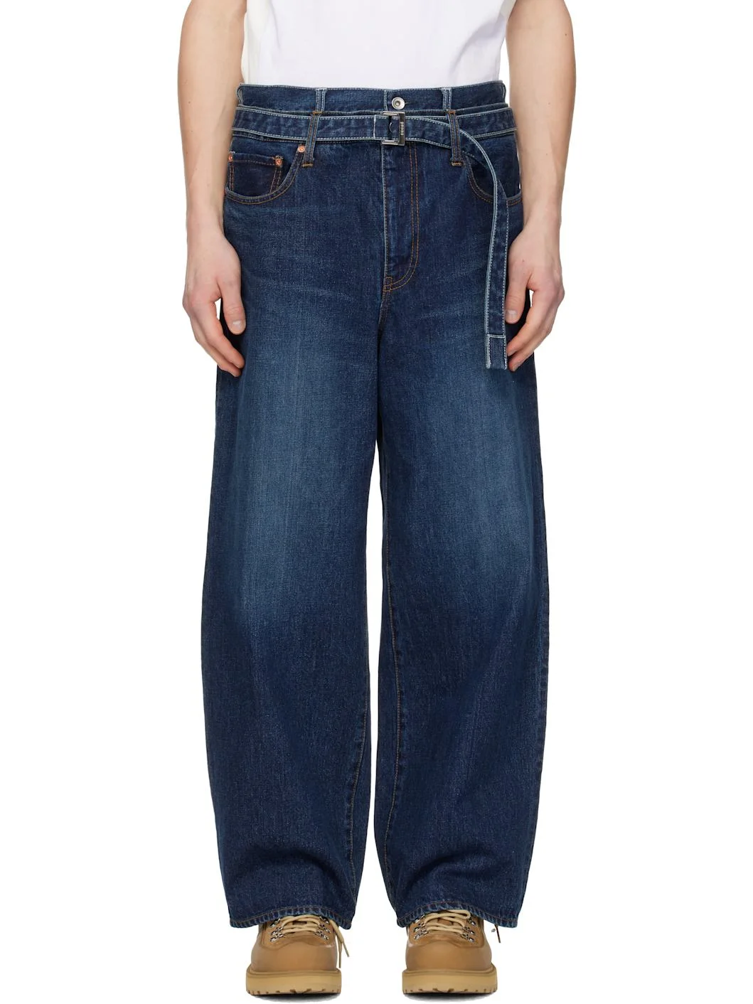 Non-stretch denim jeans. · Fading and whiskering throughout · Belt loops · Detachable cinch belt at layered waistband · Five-pocket styling · Zip fly · Contrast stitching in tan Supplier color: Blue 100% cotton. Made in Japan 261445M186002
