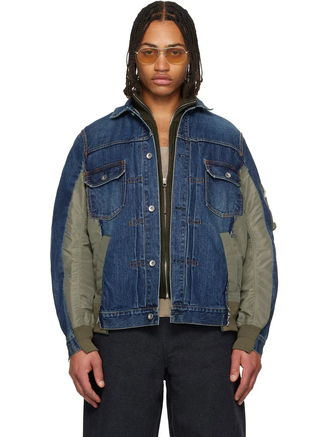 Navy & Khaki Nylon Twill & Denim Jacket