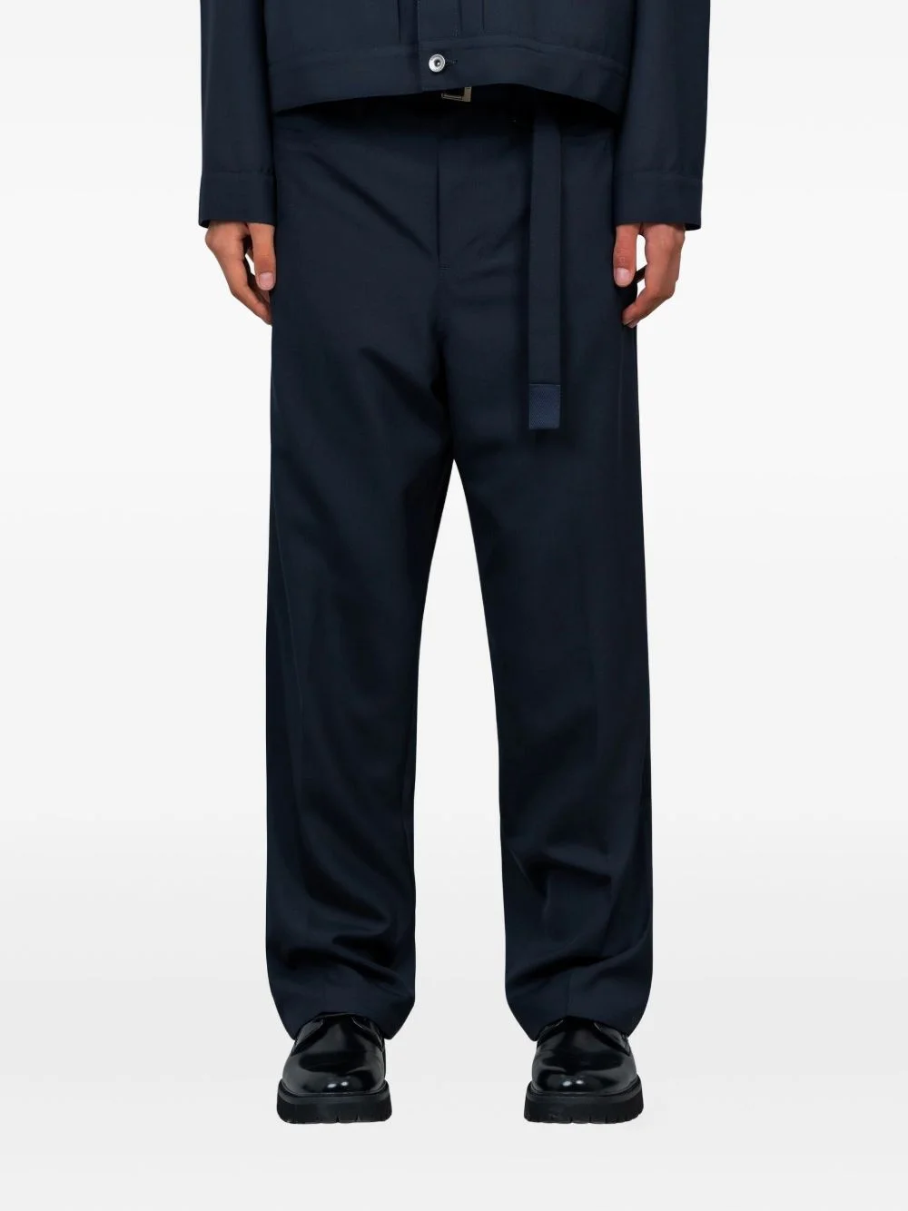 pleated belted trousers Highlights - Navy blue - Pleated front - Belt fastening - Straight leg - Side pockets - Button fastening Imported Composition Polyester 70%, Wool 30% Washing instructions Read Manufacturer Guidelines