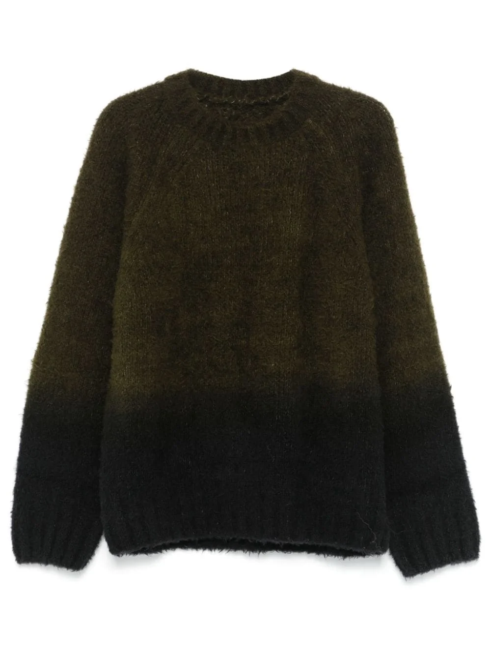 ombre-effect sweater Highlights - Khaki/black - Wool blend - Knitted construction - Brushed effect - Ombre effect - Ribbed trim - Crew neck - Long raglan sleeves - Straight hem Imported Composition Wool 86%, Polyester 14% SIZE & FIT Model measurements Height 6 ft 2 in(1.87 m) Bust/Chest 35.82 in(91 cm) Hips 35.82 in(91 cm) Waist 31.88 in(81 cm) Measurement CHEST 47.99 in(121.9 cm) LENGTH 26.49 in(67.3 cm) WAIST 40.98 in(104.1 cm) SLEEVE LENGTH 25.98 in(66 cm) Shoulder Width 19.01 in(48.3 cm) FittingInformation Designed to be unstructured, offering a loose fit throughout Made with a midweight knit, this piece offers some stretch
