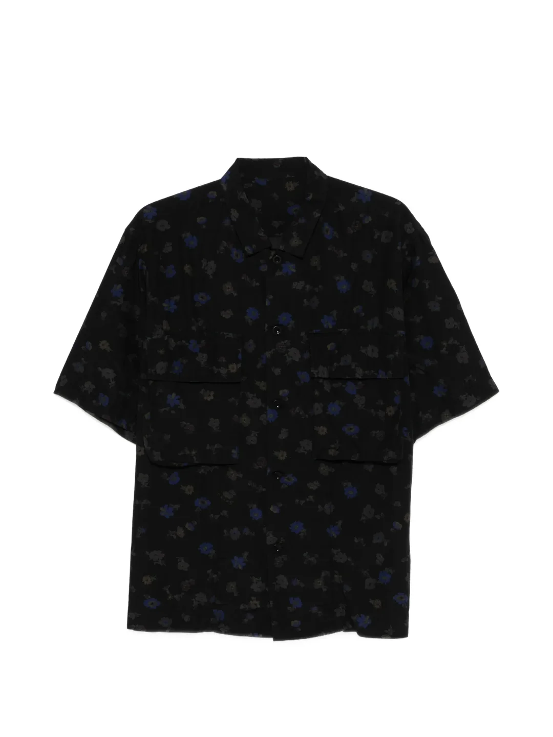 300051672BLK-01 / S626-03977M/00/001 - Overdyed floral print throughout - Short sleeves - Classic collar - Button-front closure - Premium cotton construction - Relaxed fit - Chest pocket detail The sacai Overdyed Floral Print Shirt delivers contemporary Japanese design with avant-garde aesthetic and sophisticated pattern work. Crafted from premium cotton with overdyed floral motifs in deep navy and charcoal tones, featuring the brand's signature deconstructed approach. The relaxed short-sleeve silhouette and artistic print treatment create a distinctive piece that embodies sacai's innovative design philosophy.