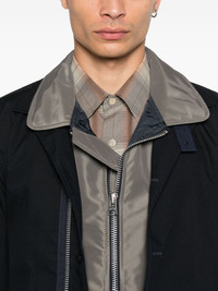 Oxford nylon cotton jacket Highlights - Blue black - Contrasting panelling - Zip fastening - Patch pocket - Drawstring hem - Long sleeves Imported Composition Outer: Cotton 70%, Nylon 30% Lining: Polyester 100% SIZE & FIT Model measurements Height 6 ft 1 in(1.85 m) Bust/Chest 35.82 in(91 cm) Hips 37.79 in(96 cm) Waist 29.13 in(74 cm) Washing instructions Dry Clean Only