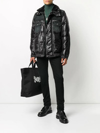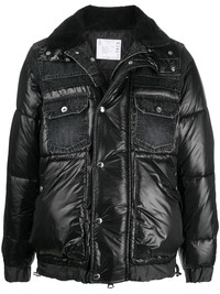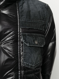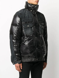 padded jacket with denim detailing Highlights - Black - Raw denim - Padded design - Long sleeves - Two chest patch pockets - Quilted finish - High neck Imported Composition Outer: Cotton 100%, Acrylic 100%, Nylon 100%, Polyester 100% Lining: Nylon 100% SIZE & FIT Model measurements Height 6 ft 1 in(1.85 m) Bust/Chest 35.82 in(91 cm) Hips 37.79 in(96 cm) Waist 29.13 in(74 cm) FittingInformation This piece fits true to size. We recommend you get your regular size Cut for a loose fit Made with a mid-weight non-stretch fabric Washing instructions Dry Clean Only