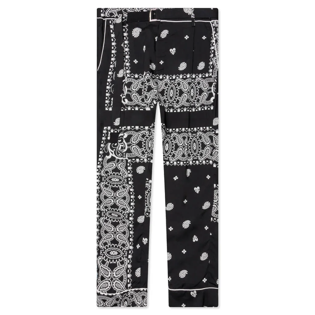 The Archive Print Mix Pants contains a paisley pattern design while utilizing premium cotton and polyester fabrication. Its loose-fitting style has a tapered design to provide a sophisticated finish. A buckle enclosure provides security within the piece while flush pockets decorate the sides. - Cotton, polyester, and cupro fabrication - Stitched hemlines - Buckle enclosure - Style No: 21-02472M-001