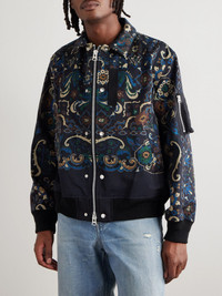 Floral-Print Cotton-Blend Bomber Jacket Navy