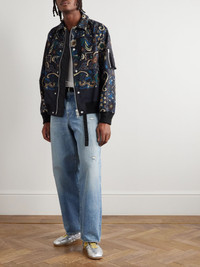 Sacai's AW25 collection features elements of gorpcore with an artistic influence. This cotton-blend bomber jacket is patterned with flowers in moody colours and finished with utilitarian details like silver-tone snaps and zippers. Size & Fit - Size 1 = S, 2 = M, 3 = L and 4 =XL - Fits true to size. Take your normal size - Designed for a slightly loose fit - Ribbed hem - Mid-weight, non-stretchy fabric - Model is shown wearing a 2 - Model measures: chest 38"/ 96cm, height 6'0"/ 183cm Details & Care - Multicoloured cotton-blend - Snap and two-way zip fastenings - 50% cotton, 50% rayon - Fully lined - Dry clean