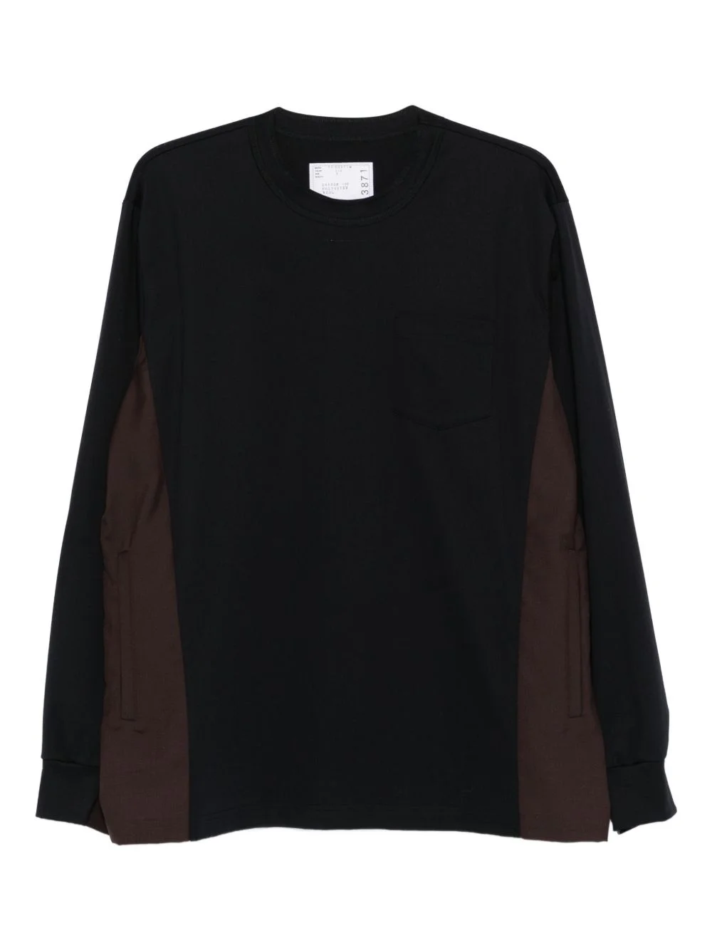 panelled pocket T-shirt Highlights - Black - Brown panelling - Long sleeves - Crew neck - Chest patch pocket - Straight hem Imported Composition Cotton 100%, Polyester 70%, Wool 30% SIZE & FIT Model measurements Height 6 ft 2 in(1.87 m) Bust/Chest 37.79 in(96 cm) Hips 37.79 in(96 cm) Waist 30.31 in(77 cm) Washing instructions Dry Clean Only