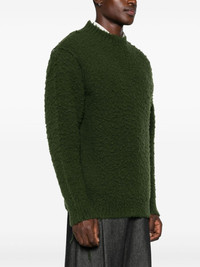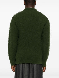 pilled sweater Highlights - Olive green - Wool blend - Pilled finish - Knitted construction - Crew neck - Ribbed trim - Drop shoulder - Long sleeves - Fringe detailing - Straight hem Imported Composition Wool 55%, Acrylic 25%, Nylon 20% SIZE & FIT Model measurements Height 6 ft 2 in(1.89 m) Bust/Chest 39.76 in(101 cm) Hips 37.4 in(95 cm) Waist 29.92 in(76 cm) Measurement CHEST 23.62 in(60 cm) LENGTH 28.34 in(72 cm) SLEEVE LENGTH 25 in(63.5 cm) Shoulder Width 20.47 in(52 cm) FittingInformation Designed to be unstructured, offering a loose fit throughout Made with a midweight knit, this piece offers some stretch