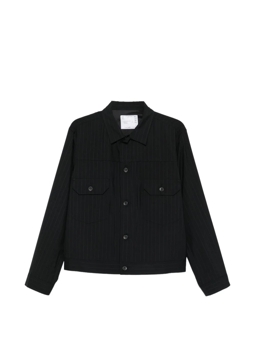 pinstripe front-pocket shirt jacket Highlights - Black - Pinstripe design - Front pockets - Button fastening - Point collar - Long sleeves Imported Composition Outer: Polyester 70%, Wool 30% Lining: Cupro 100% Washing instructions Dry Clean Only