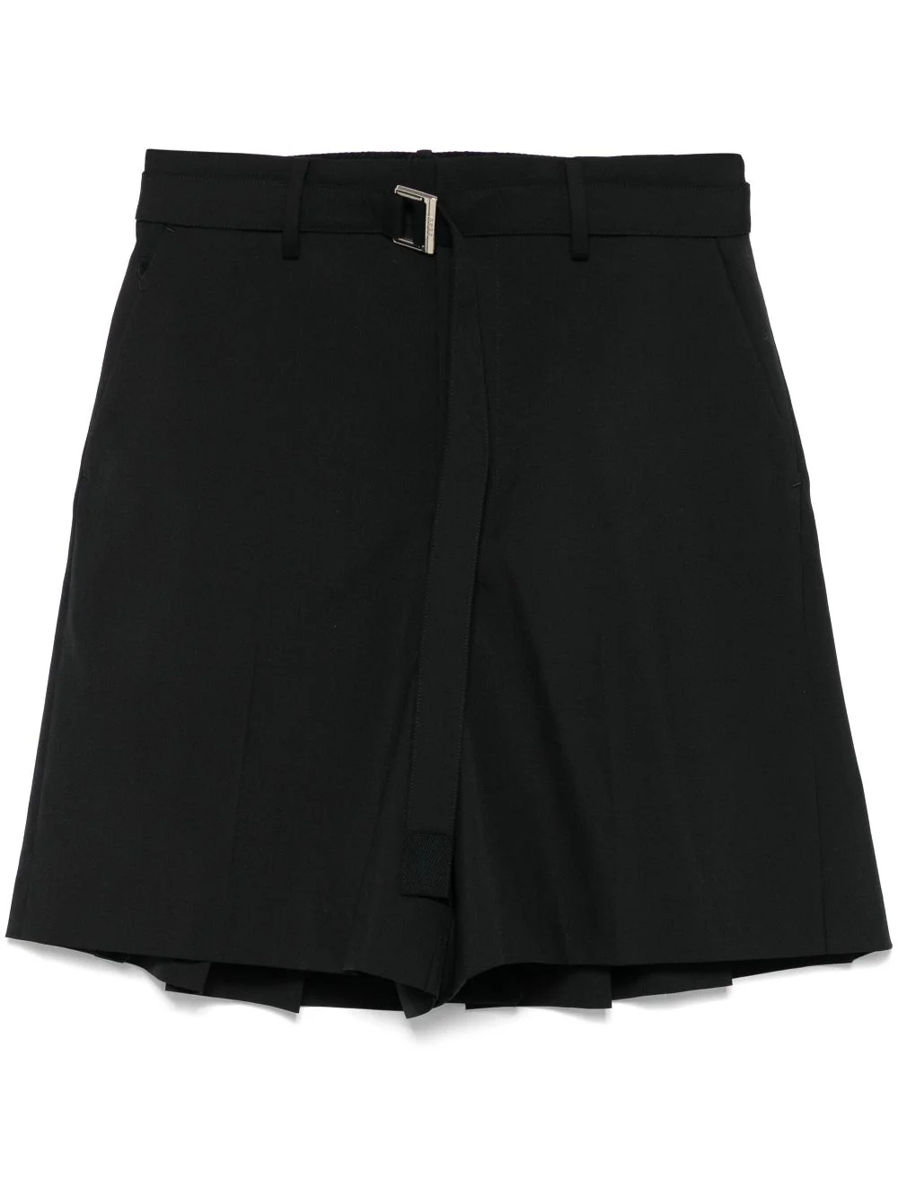 pleated shorts Highlights - Black - Hook and zip fly fastening - Belt loops - Belted waist - Two side slash pockets Imported Composition Lining: Cupro 100% Outer: Polyester 70%, Wool 30% SIZE & FIT Model measurements Height 5 ft 10 in(1.78 m) Bust/Chest 29.52 in(75 cm) Hips 34.64 in(88 cm) Waist 23.62 in(60 cm) FittingInformation Designed for relaxed fit, offering a comfortable loose fit over the leg The belt offers adjustability for fitted preferences Made from a midweight non-stretch fabric