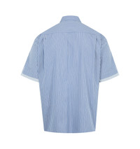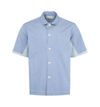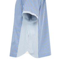 SACAI Poplin Shirt featuring spread collar, short sleeves, button-front closure and paneled sides. Made in Japan. DESIGNER STYLE ID: 26-03980M COLOR: 421 BLUE STRIPE