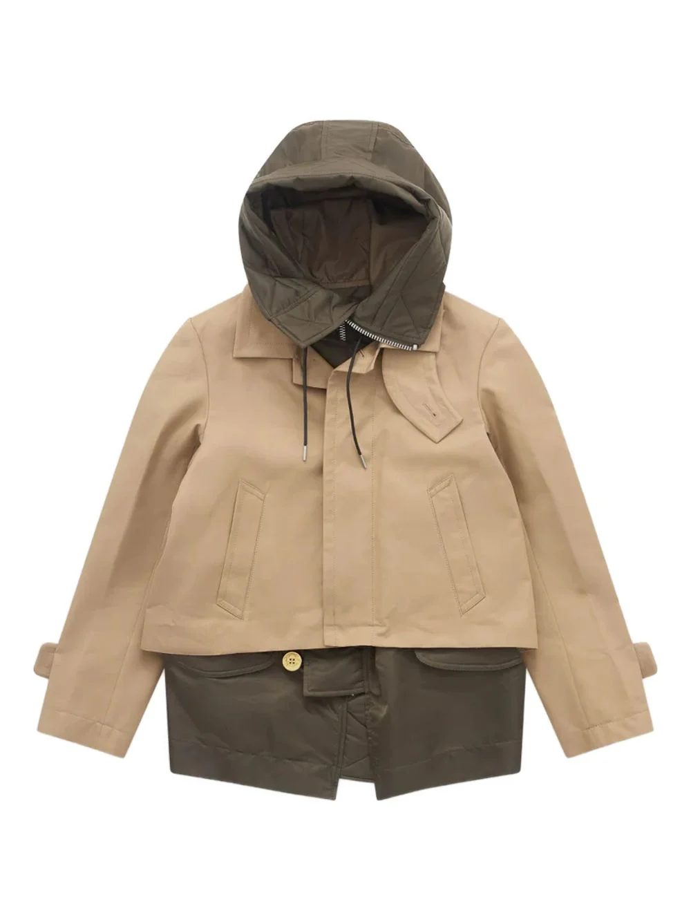 quilted-collar jacket Highlights - Beige and green - Quilted collar - Zip fastening - Buttoned cuffs - Two-tone design - Drawstring hood Imported Composition Fabric 100% Washing instructions Read Manufacturer Guidelines