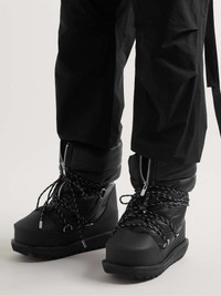 Quilted Shell and Leather Lace-Up Boots