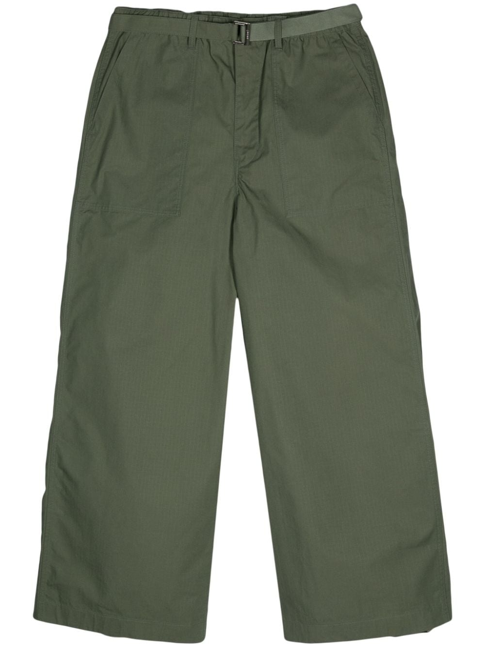 ripstop trousers Highlights - Green - Cotton blend - Ripstop texture - Mid-rise - Concealed fly and button fastening - Elasticated waistband - Belt loops - Two side patch pockets - Two rear flap pockets - Detachable belt - Wide leg - Straight hem Imported Composition Cotton 53%, Nylon 47%