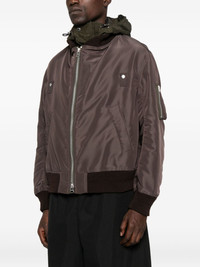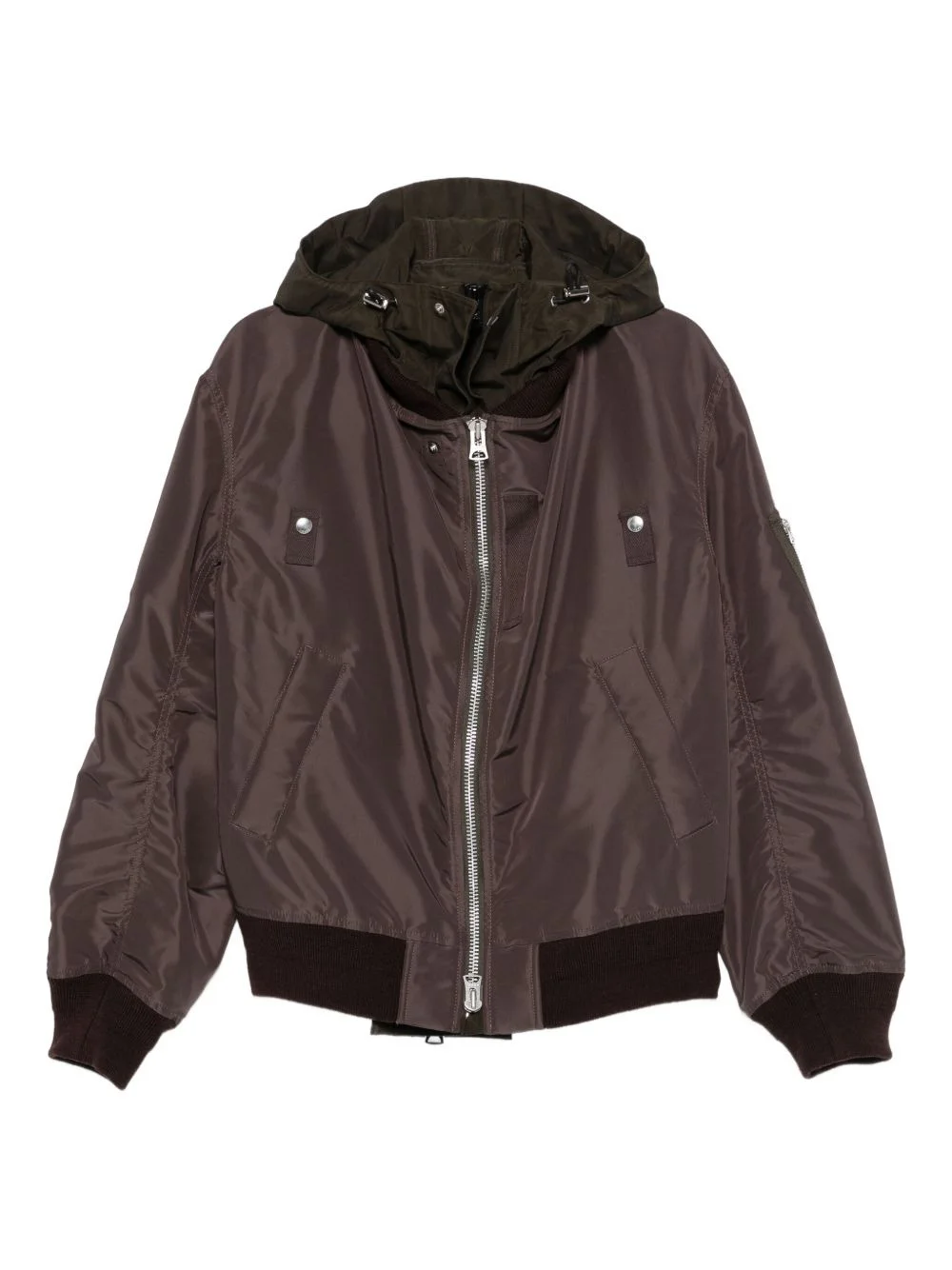 hooded zip-front bomber jacket Highlights - Brown - Zip fastening - Drawstring hood - Welt pockets - Ribbed hem Imported Composition Lining: Polyester 100% Outer: Nylon 100% SIZE & FIT Model measurements Height 6 ft 0 in(1.84 m) Bust/Chest 37.79 in(96 cm) Hips 37 in(94 cm) Waist 31.49 in(80 cm) Washing instructions Dry Clean Only