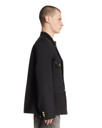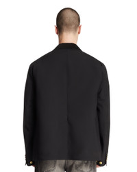 Sacai x Carhartt WIP Black Suiting Duck Jacket. Black wool-blend fabric, four Dearborn canvas pockets, two patch pockets at the sides, welt pocket on the chest, front button closure. Corduroy and Dearborn canvas lapels. Fabric co-branded label, gold-tone hardware, relaxed fit. Mitar is 186 cm and he is wearing size III. DETAILS Model: 2603989M001 Composition: 70% Polyester, 30% Wool; Details: 100% Cotton Made in: JAPAN Season: SS26