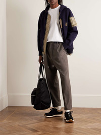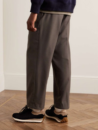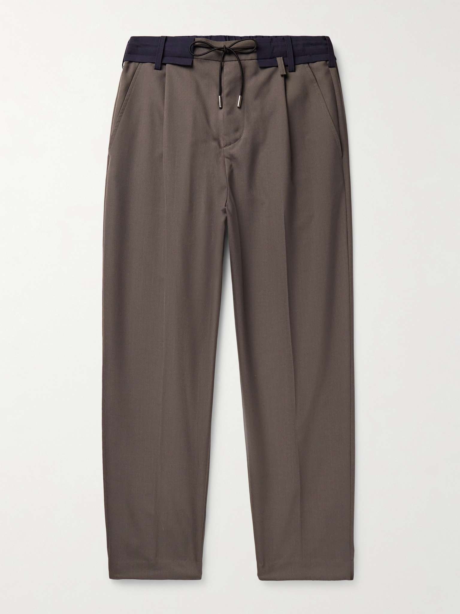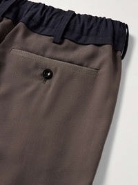 Sacai updates traditional suiting with a cool, utilitarian feel in these pleated trousers. Made in Japan with a blend of wool, they're designed with a contrasting elasticated drawstring waistband and toggles to adjust the fit near the cuffs. Size & Fit - Size 1 = S, 2 = M, 3 = L and 4 =XL - Fits true to size. Take your normal size - Relaxed slim cut; low-crotch style - Adjustable at the waist - Drawcord hems - Lightweight, non-stretchy fabric - Model is shown wearing a 2 - Model measures: waist size 32, height 6'2"/ 188cm Details & Care - Dark-taupe and navy polyester and wool-blend - Hook and zip fastening - 70% polyester, 30% wool - Dry clean