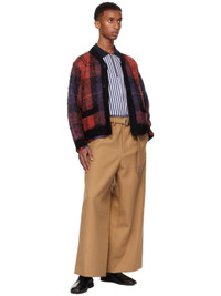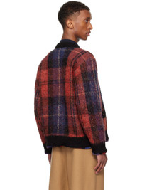 Padded brushed knit wool-blend boucle cardigan. Jacquard check pattern throughout. · Rib knit Y-neck, hem, and cuffs · Patch pockets · Press-stud vent at side seams · Raglan sleeves · Plaid pattern printed at full poplin lining Available exclusively at SSENSE. Supplier color: Red Body: 55% wool, 25% acrylic, 20% nylon. Fill: 100% polyester. Lining: 55% rayon, 45% cotton. Made in Japan 242445M200000
