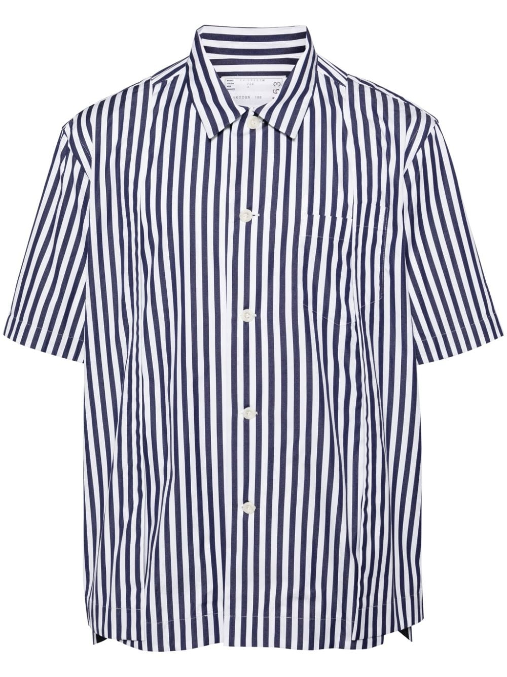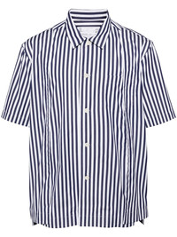 cotton poplin shirt Highlights - Navy/white - Cotton - Poplin texture - Vertical stripe pattern - Deconstructed design - Front slits - Rear slits - Chest patch pocket - Classic collar - Short sleeves - Front button fastening - Straight hem Imported Composition Cotton 100% SIZE & FIT Model measurements Height 6 ft 2 in(1.87 m) Bust/Chest 34.25 in(87 cm) Hips 36.22 in(92 cm) Waist 29.52 in(75 cm) FittingInformation Designed to be unstructured, offering a loose fit throughout Made from a midweight non-stretch fabric