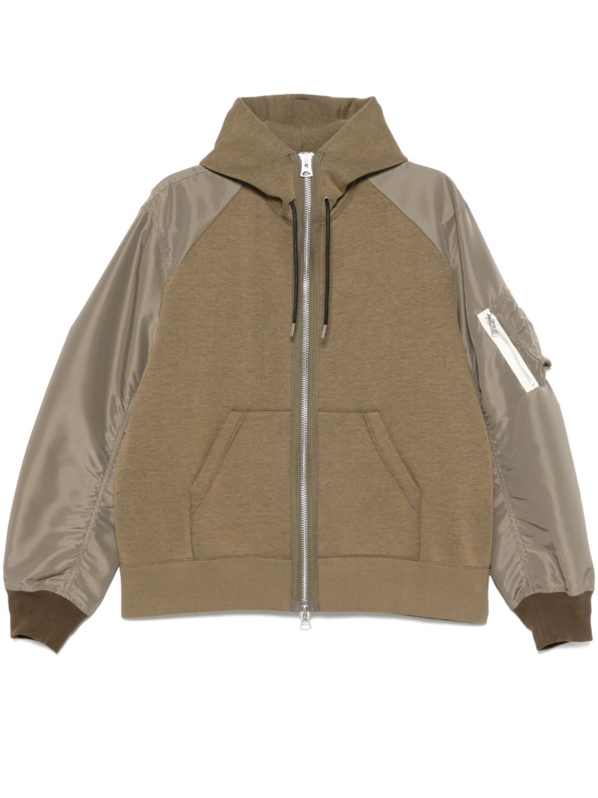 olive green front two-way zip fastening drawstring hood sleeve zip pocket two front pouch pockets Size & Fit Model Measurements: Height: 1.86 m Bust/Chest: 91.0 cm Hips: 92.0 cm Waist: 73.0 cm Model wears size 3 Fabric and Care Designer Style ID: 2503624M Designer Colour: 550 GREEN Composition: Outer: Cotton 62%, Nylon 100%, Polyester 38%; Lining: Polyester 100% Washing instructions: Dry Clean Only Made in Japan