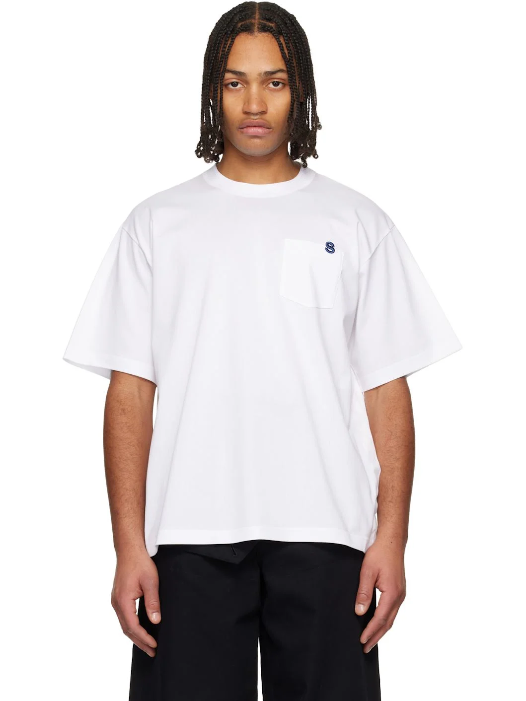 Cotton jersey T-shirt. · Rib-knit crewneck · Embroidered logo and patch pocket at chest · Press-stud vent at side seams · Dropped shoulders Supplier color: White 100% cotton. Made in Japan 261445M213011