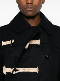 wool duffle coat Highlights - Navy blue - Wool - Felted - Spread collar - Long sleeves - Two chest welt pockets - Two side flap pockets - Straight hem - Front toggle fastening - Double-breasted button fastening Imported Composition Lining: Cupro 100% Outer: Wool 100% SIZE & FIT Model measurements Height 6 ft 2 in(1.88 m) Bust/Chest 36.61 in(93 cm) Hips 35.82 in(91 cm) Waist 27.95 in(71 cm) FittingInformation Designed for a relaxed fit, this piece allows for comfort and movement when worn The adjustable tabs allow for fitted preferences Made from a midweight non-stretch fabric This piece fits true to size – take your usual size
