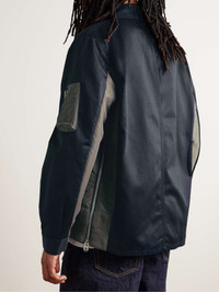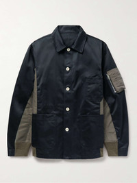 Japanese label Sacai has mastered the art of juxtaposition. A hybrid between a chore coat and a bomber, this jacket is made from panels of cotton-twill and nylon and has pockets inspired by both styles. Zipped sides allow you to adjust the shape. Size & Fit - Size 1 = S, 2 = M, 3 = L and 4 =XL - Fits true to size. Take your normal size - Designed for a relaxed fit - Mid-weight, non-stretchy fabric - Model is shown wearing a 1 - Model measures: chest 36"/ 92cm, height 6'1"/ 185cm Details & Care - Midnight-blue cotton-twill, dark-taupe nylon - Button fastenings - Fabric1: 100% cotton; fabric2: 100% nylon; trim1: 60% acrylic, 40% wool; trim2: 100% polyester - Dry clean