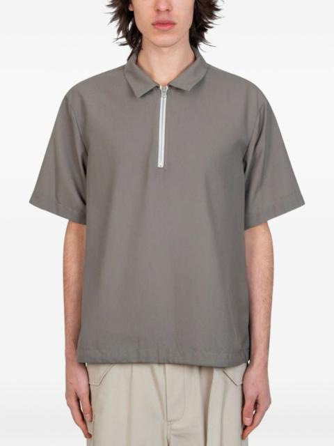 zip-front polo shirt Highlights - Grey - Short sleeves - Half-zip fastening Imported Composition Polyester 70%, Wool 30% Washing instructions Read Manufacturer Guidelines