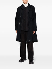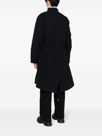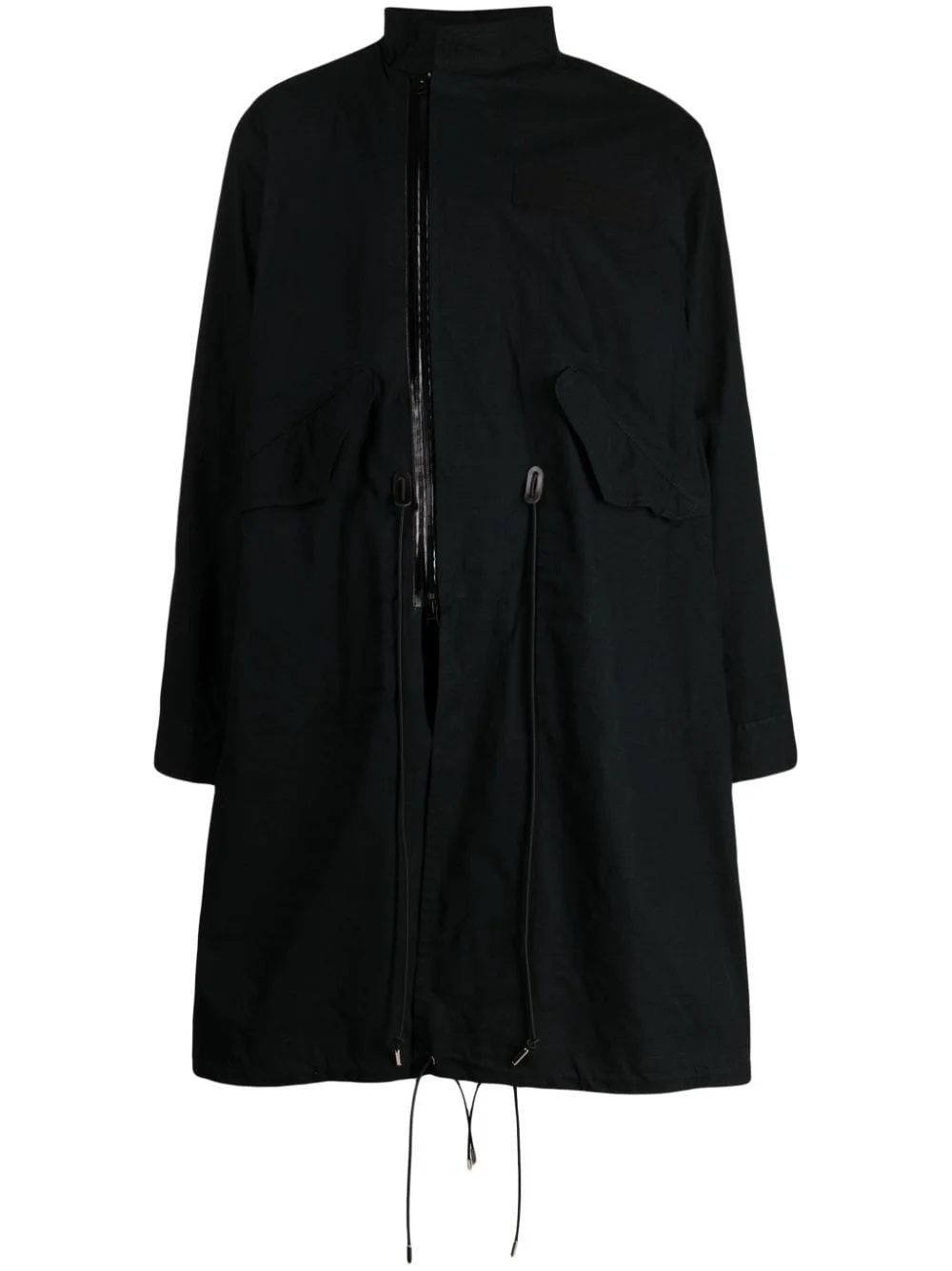 zip-up long-sleeve coat Highlights - Black - Funnel neck - Front zip fastening - Drawstring waist - Two front flap pockets - Long sleeves - Curved hem Imported Composition Outer: Cotton 68%, Nylon 32% Body: Calf Leather 100% Nylon 100% SIZE & FIT Model measurements Height 6 ft 2 in(1.87 m) Bust/Chest 34.25 in(87 cm) Hips 36.22 in(92 cm) Waist 29.52 in(75 cm) FittingInformation Designed for a boxy fit, intended for a loose fit throughout The adjustable drawstring means that you can adjust this piece’s fit to suit your comfort and preference Made from a midweight non-stretch fabric This piece fits true to size – take your usual size Washing instructions Dry Clean Only