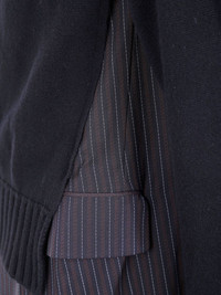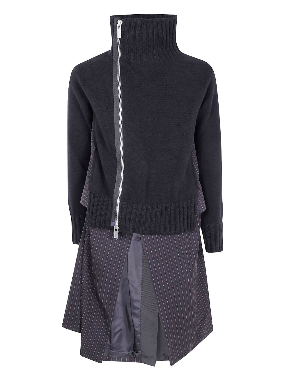 zip-up pinstripe coat Highlights - Black - Pinstripe pattern - Zip fastening - High neck - Ribbed detailing - Long sleeves Imported Composition Wool 100%
